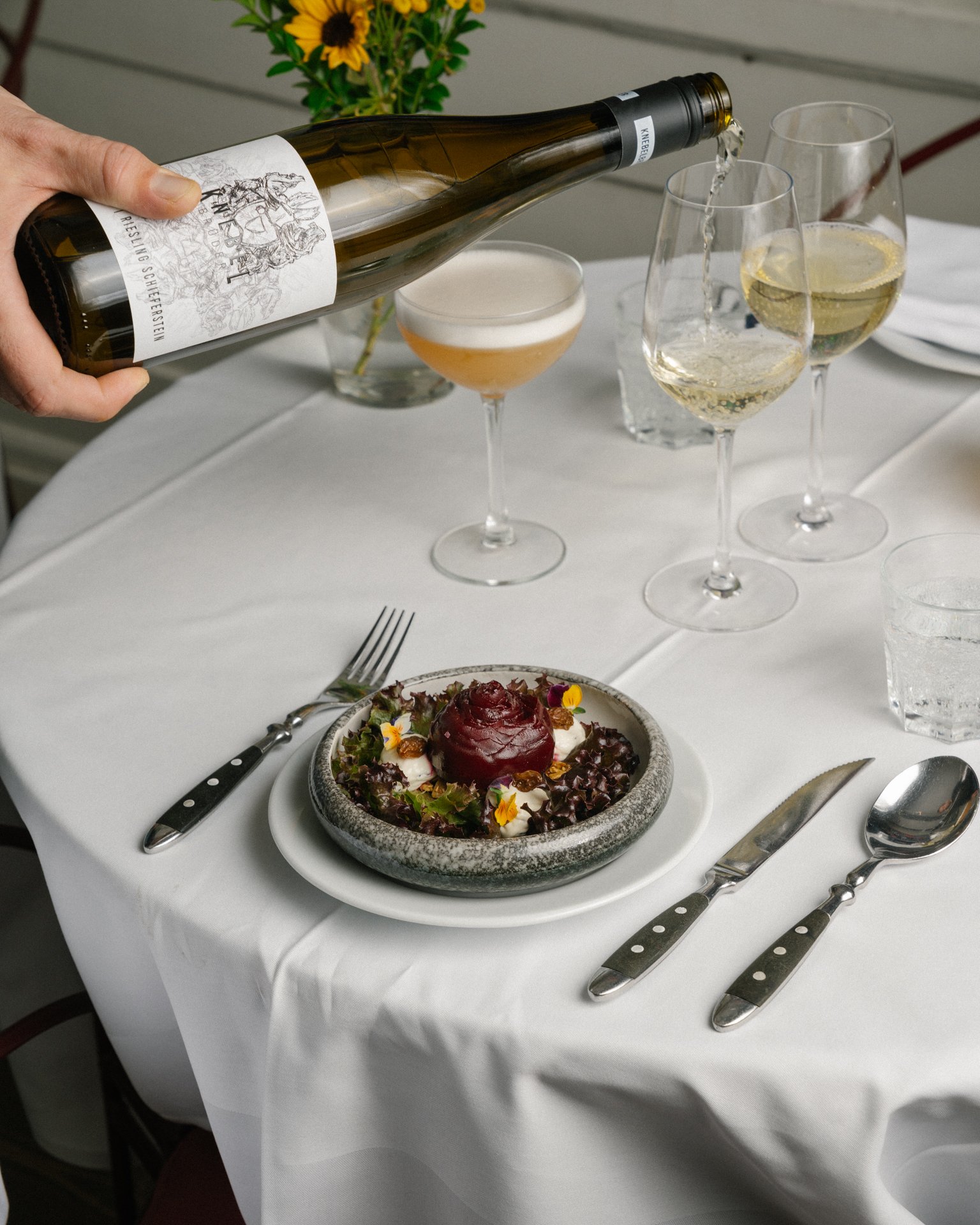 Our beverage selection includes natural wines, handcrafted cocktails, beers, and carefully curated non-alcoholic options – all created with attention to both taste and sustainability.